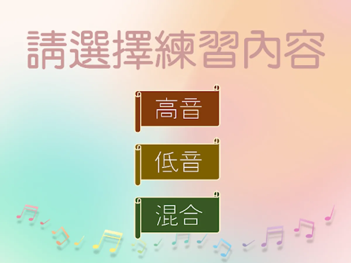 - All exercises are divided into three parts: "Treble Notes", "Bass Notes" and "Mixed Version".