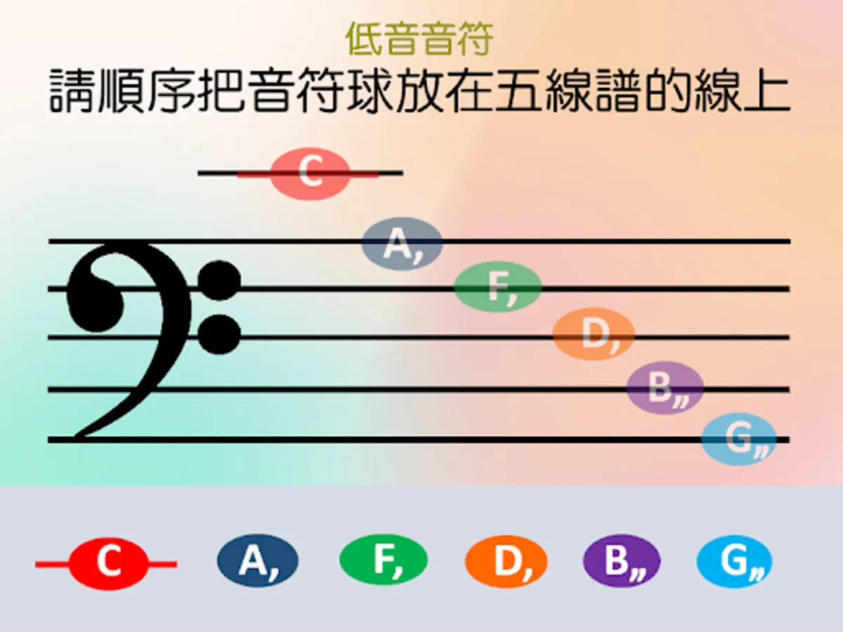 - 2-star difficulty: place the note balls on the staves in order when prompted (more note balls)