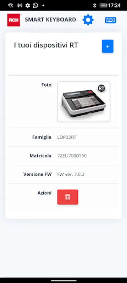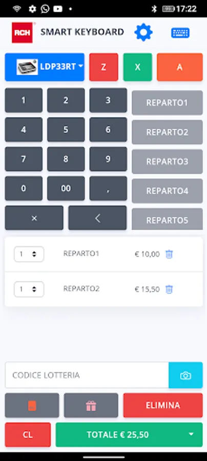 The RCH Smart Keyboard application allows you to send commands to Onda RT, Spot R RT, Walle Mec RT, K-Bill RT and Print! F directly from the screen of an Android tablet or smartphone in a quick and intuitive way, facilitating the daily operations of the 'merchant.