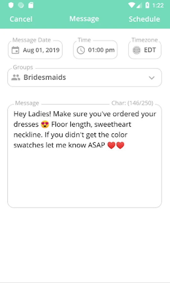- 📝Editable messages - Scheduled WedTexts reminders can be edited in case something changes