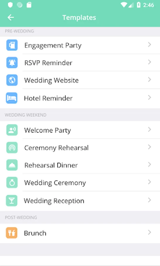- 👨👩👧👦Guest Groups - Your entire guest list can receive reminder messages or you can send out custom messages to unique groups of guests, so guests get exactly the information they need when they need it.