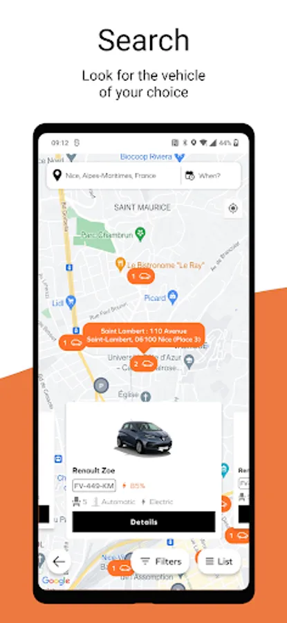 2. Select your vehicle in the vicinity: in the city, in a branch or in the parking lots of partner stores