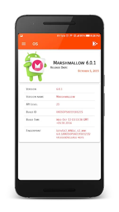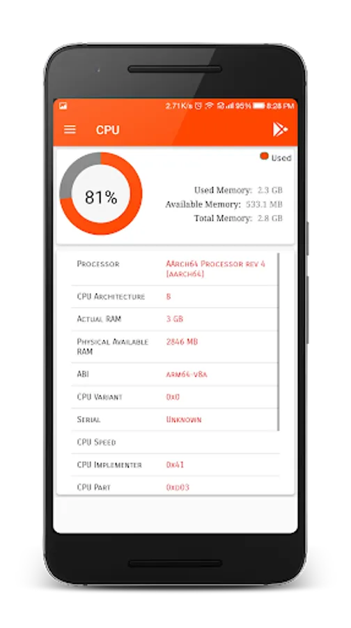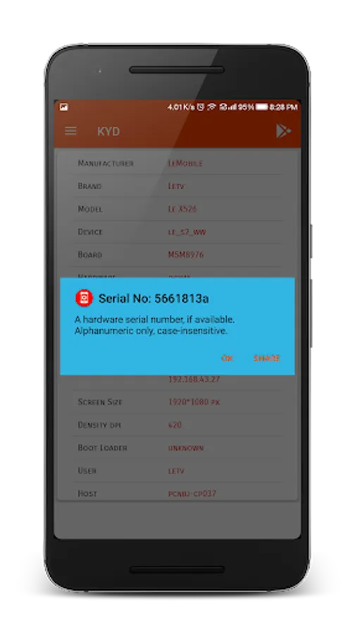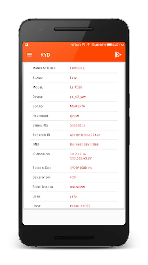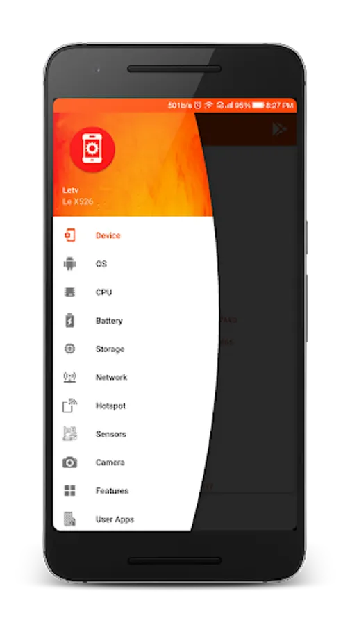 The information such as Phone, OS, CPU, Battery, Network, Hotspot, Storage, Camera, Sensors, Available Features, User Installed, System Application List and lot more.