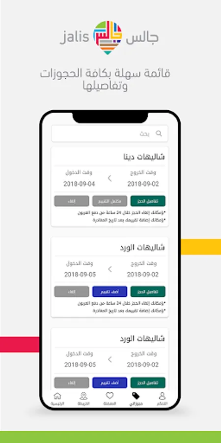 With the application sitting, goodbye for days looking for breaks by car and move from one break to another in hot or rainy weather. Sitting is an integrated application serving all customers whether they are tenants or owners of breaks. The application offers a safe service for owners of rest houses to manage their property of rest houses and chalets through the application is easy to use and very secure and without any additional expenses and hidden. The app offers pricing for holidays, holidays and weekends. As well as the application serves tenants to provide a booking service in a very easy and secure payment process is between the tenant and the bank without saving the data card. You can search by the name of the rest house or chalet, or the name of the neighborhood, or the name of the city .. You will be able to browse the pictures of the rest houses and know their prices and booked directly from the application without the need to contact anyone or visit the place. You will be able to cancel your reservation within 24 hours in order to get a refund. Payment will be automatic and secure through Mada, Visa and MasterCard. If you have any questions, you can contact the site management.