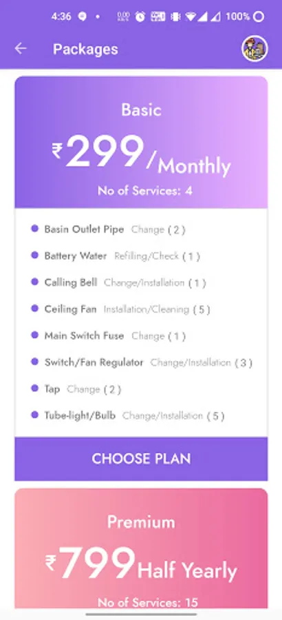 Choose from over 50+ services and house maintenance plans on the app based on pre-approved prices and hassle-free payment methods.