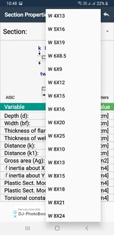 This magnificent app includes tables with all the international steel sections, with their dimensions, properties, classification, resistance and buckling resistance values according to Eurocode 3, EN1993-1-1:2005. The tables are extended to non-standard steel sections and welded section with dimensions given from the user.