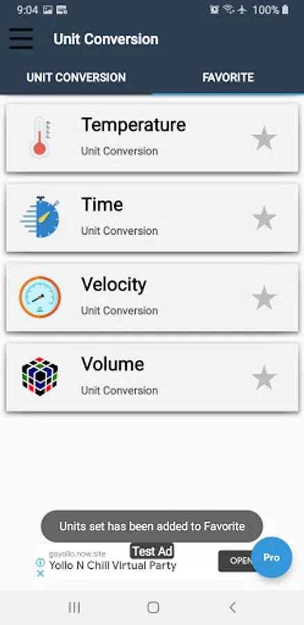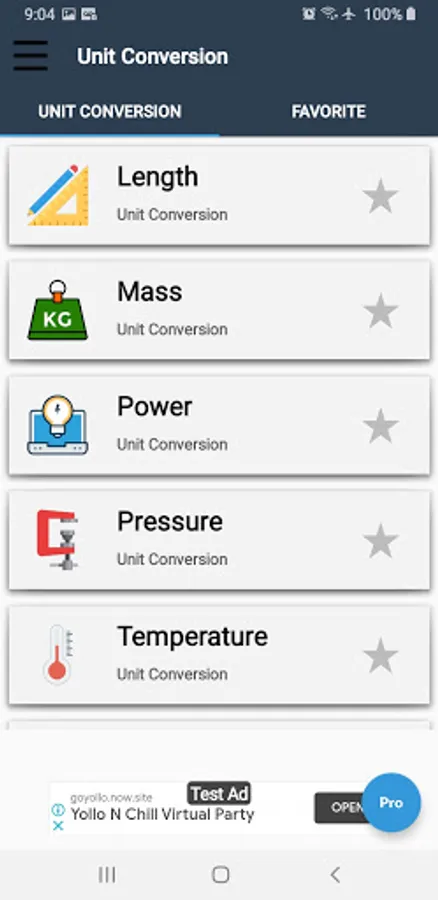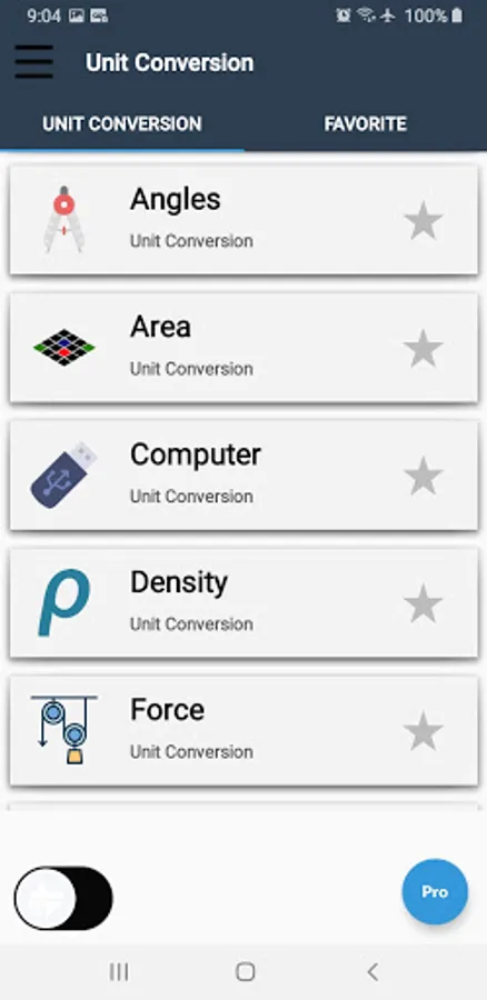 The app has two simple Tabs, the first one contains a complete list of all available unit conversion sets. The second Tab has the favorite unit sets that have been selected by the user. Future Tabs are already being designed to include additional features, that make RCM UC a perfect app to everything you want to convert.
