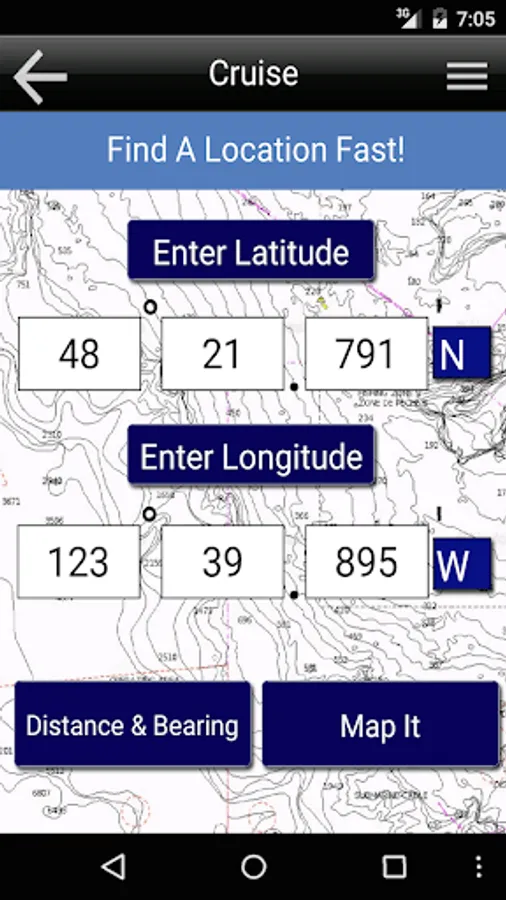 A “where am I” feature allows you to email your location and picture to anyone you wish and shows the position on a map. Find latitude / longitude functionality allows you to quickly enter coordinates and then find the distance and bearing to that point while showing you your current location. The App will also show the entered location in google maps.