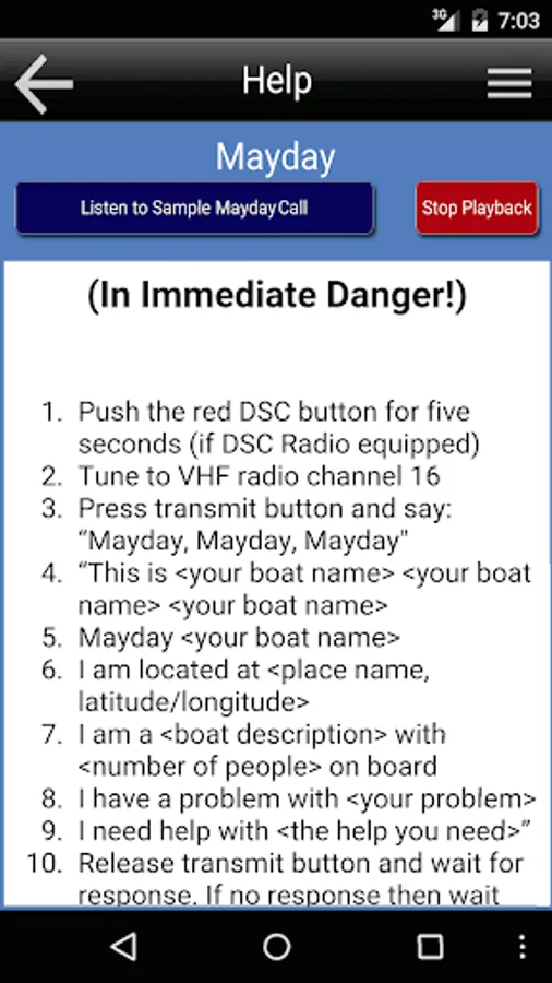 It’s nice to know the help section has your back. From phone numbers to call for a tow, to emergency radio procedures with samples, you will know exactly what to do if you need help. Distress signals are shown and man overboard, breakdown, sinking, fire, and grounding procedures are also included.
