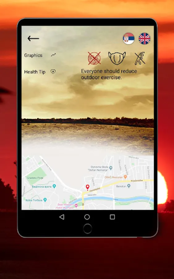 Depending on the pollution measured you will get an appropriate health tip. Horreum Weather will advise staying in if the levels of pollution are dangerous for your health.