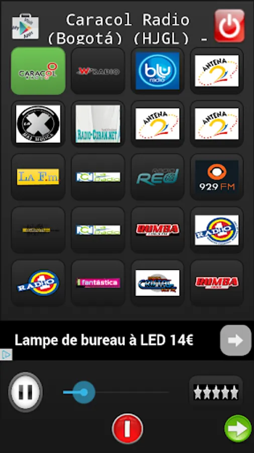 normally the most popular Colombian radio in instant playback (unbuffered because including