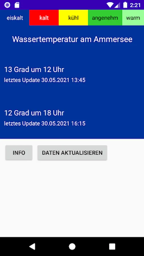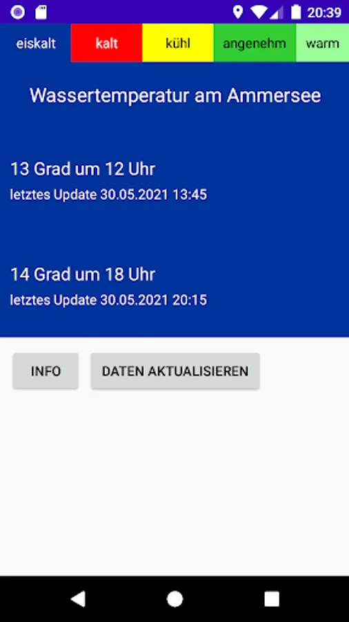 The app provides a forecast as well as the current water temperature of the Ammersee in the Landsberg district in Bavaria based on an algorithm based on past data.