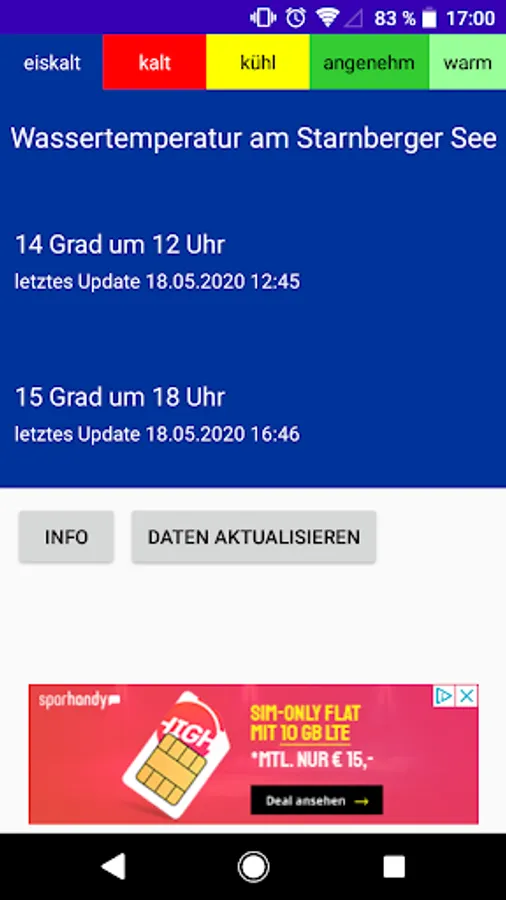 The app provides a forecast and the current water temperature of Lake Starnberg in the district of Starnberg in Bavaria based on an algorithm based on historical data.