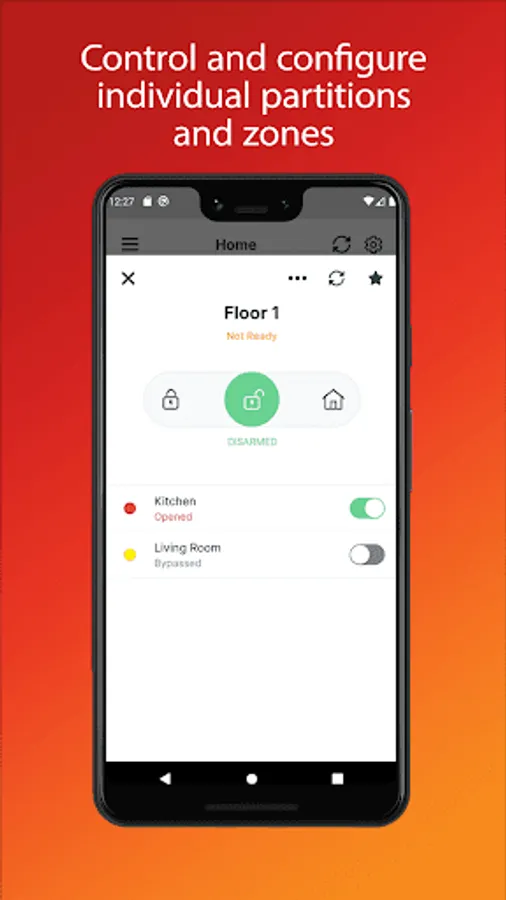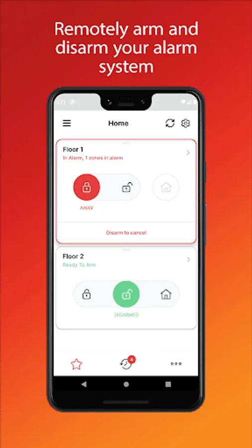 • Remotely arm and disarm your alarm system (supports Arm Stay, Arm Away and multiple partitions).