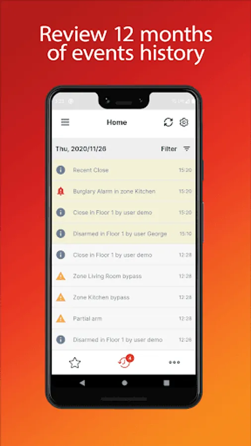 To access a demo version of the application, please use the following credentials:User: demo | Pass: demo | Arm PIN: 1234