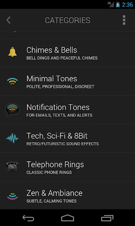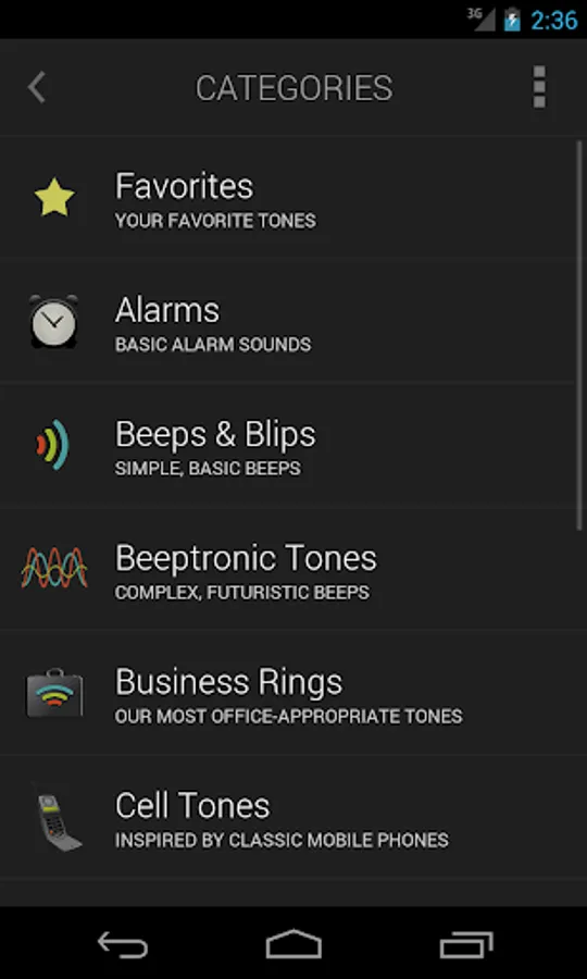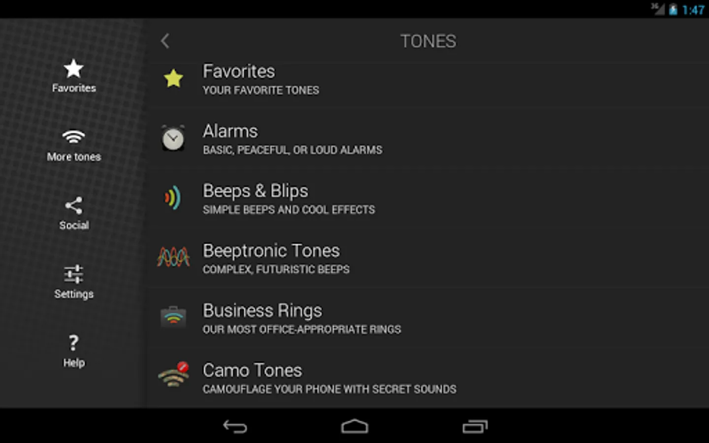 Each tone in our library has been carefully designed and professionally mastered to sound clear and pristine on your Android device. Browse through the different categories of ringtones, pick your favorites, and assign them as your main ringtone or notification sound. You can also save them to your phone's memory to assign them with your phone's settings or use them with other apps.