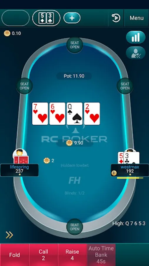 RCPoker and its use is intended for an adult audience. Practice or success on a social gaming platform does not imply future success at real money gambling.