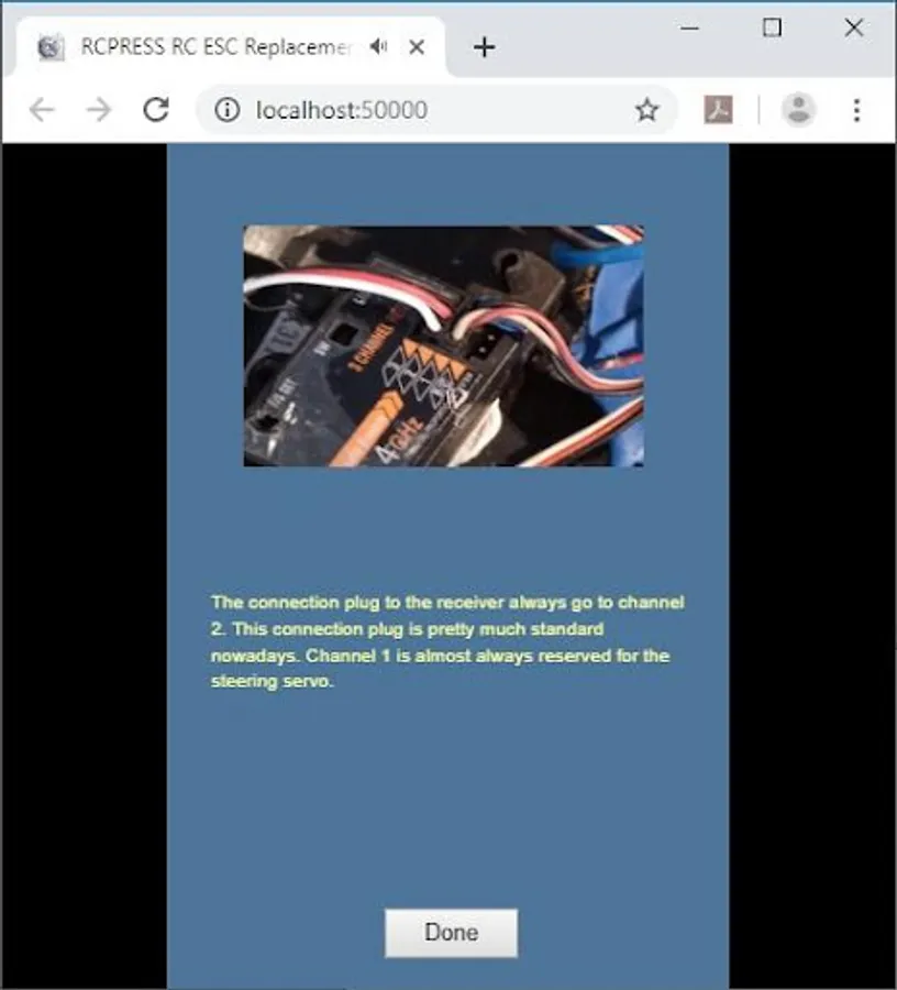 This app shows you how to quickly install a RC car brushless ESC for RC cars.