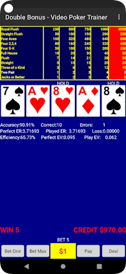 Video Poker Strategy Trainer - Double Bonus