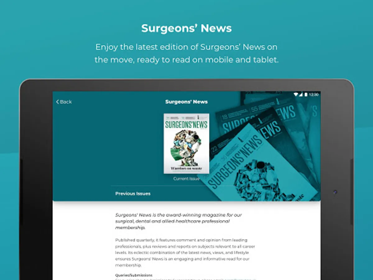 • Enjoy the latest edition of Surgeons’ News delivered right to your device, ready to read on the move for mobile and tablet.