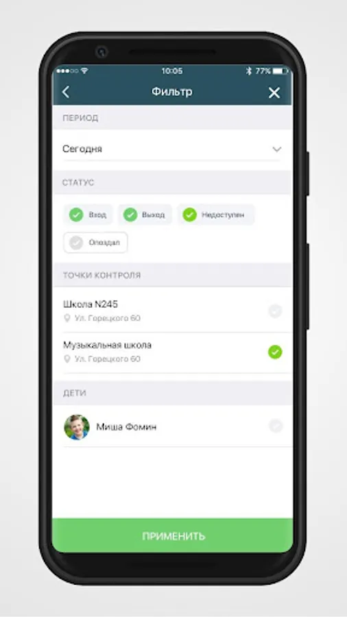 Track your child’s location, receive notifications of entry and exit from school and other places.