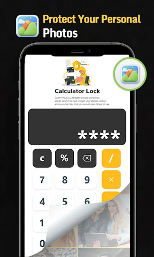 The Gallery locker photo vault encrypts any content you don't want to share with others, as well as private files in any format or size. Calculator lock photo vault and hide app is a secure photo lock, file locker, and video hide app that allows you to hide photos, secret videos, and files behind the calculator. To protect your privacy, lock the app with a password and add a fingerprint You can open hidden files only by typing a correct password into the calculator vault Gallery lock.