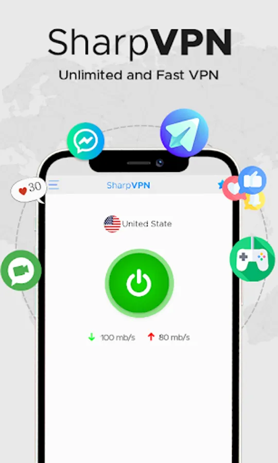SharpVPN offers a free, fast, and unlimited data VPN speed specially designed for Android users. SharpVPN, Secure VPN & Fast Speed is the world's fastest and most secure VPN master app trusted by millions of users worldwide. Benefit from best free VPN service with unlimited data, unlimited bandwidth, and global VPN servers.