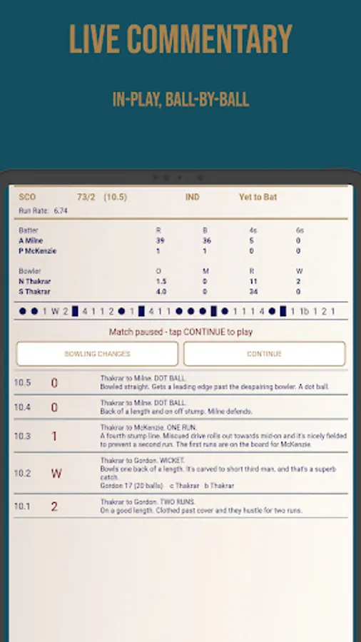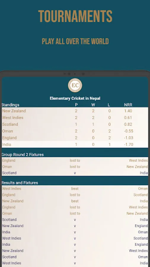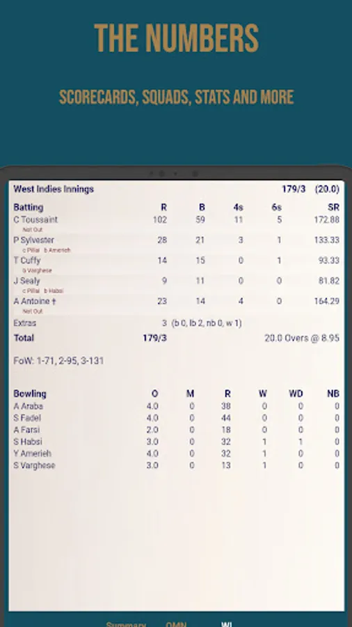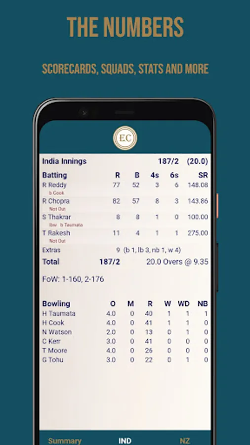 Stats lovers can get their fix with scorecards for all matches, detailed player stats for your own team and all your opponents, the coach profile, and top performer info in the tournament stats page.