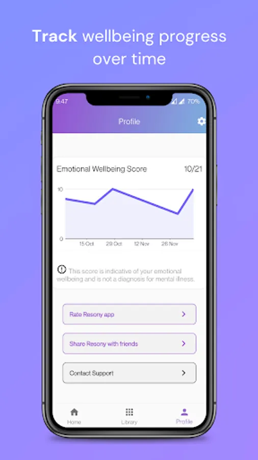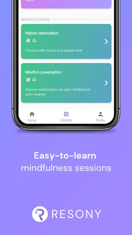 Resony is your personal guide in unwinding anxiety and relieving stress through paced breathing and relaxation sessions. Research-backed and simple techniques of resonant breathing (coherence training), progressive muscle relaxation exercises, gratitude and self-care journal, and mindfulness sessions are made available to help you manage stress and achieve anxiety relief to build resilience.