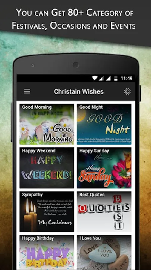 Let's celebrate all Christian holidays, festivals, occasions, events, special days and daily greeting card using 'Christian - All Wishes / Greetings / Gif's Images app.