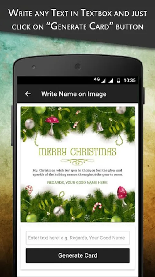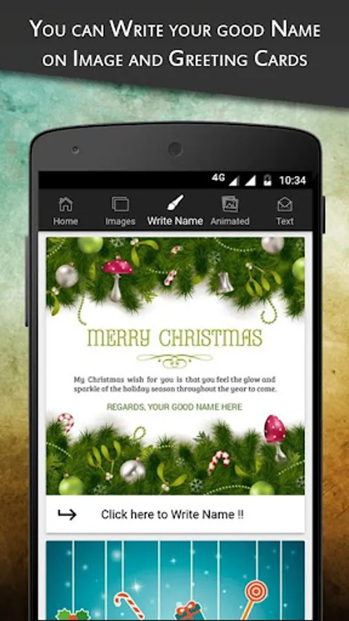 3) Your write your name, any text on greeting card and image from "Write Name" tab