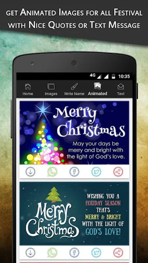 In this app you can get all kind of Christians festivals like, Merry Christmas, Easter Day, and Good Friday..etc If you Loved Christmas Day festival, It's an annual festival memorialize the birth of Jesus Christ, and celebrating among billions of people around the world on 25th December in every year. On this day if you often send christmas wishes via christmas greeting cards, christmas wishes with name and christmas gifts to people around you. then you should download this FREE and best app and see the best christmas wishes images with quote, gits and text messages and you can get same as for others festivals.