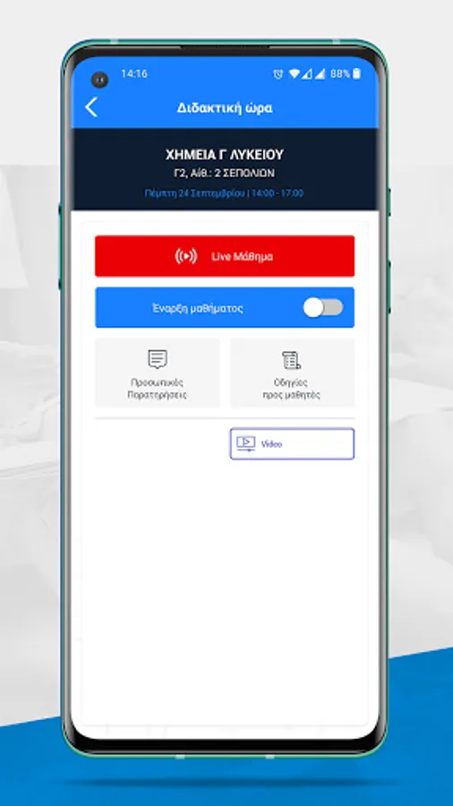The application "e-seminario", is an innovative application for organizing and managing the operation of the digital learning platform "e-seminario.gr", the educational organization "BM Educational IKE". It is used by teachers, students and their parents who work or study in the educational organization "BM Educational IKE" through the platform "e-seminario.gr". For each of the roles recognized by the application (student, parent / guardian or teacher), it provides unique training and information tools.