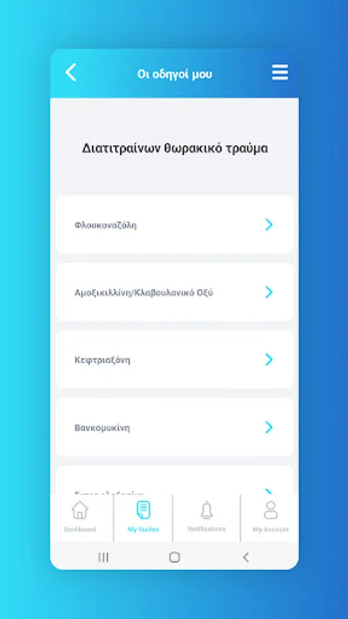 Paed Med provides direct access to Patient Management Algorithms for the Emergency Department and Therapeutic Protocols ("Guides by Specialty") for the Clinics, with the ability to save selected material in the "My Guides" folder.