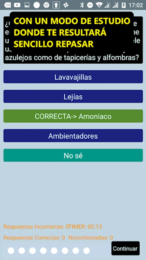 Reviewing and studying questions similar to those we are going to face is also very important. Therefore we include an easy study mode where we will propose questions and give you the answer so you can check your knowledge.