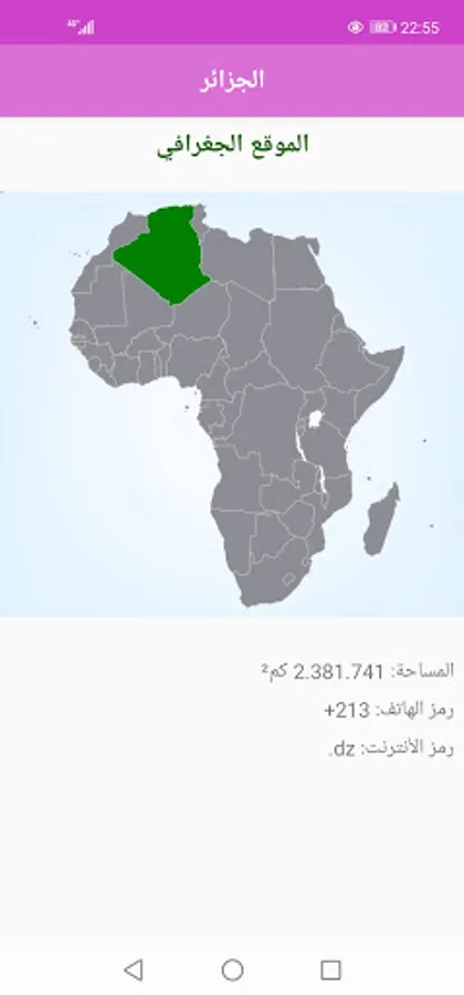 This is in addition to what the application provides you with the ability to identify the location of each African country within the map of the African continent, as is evident in the attached pictures.