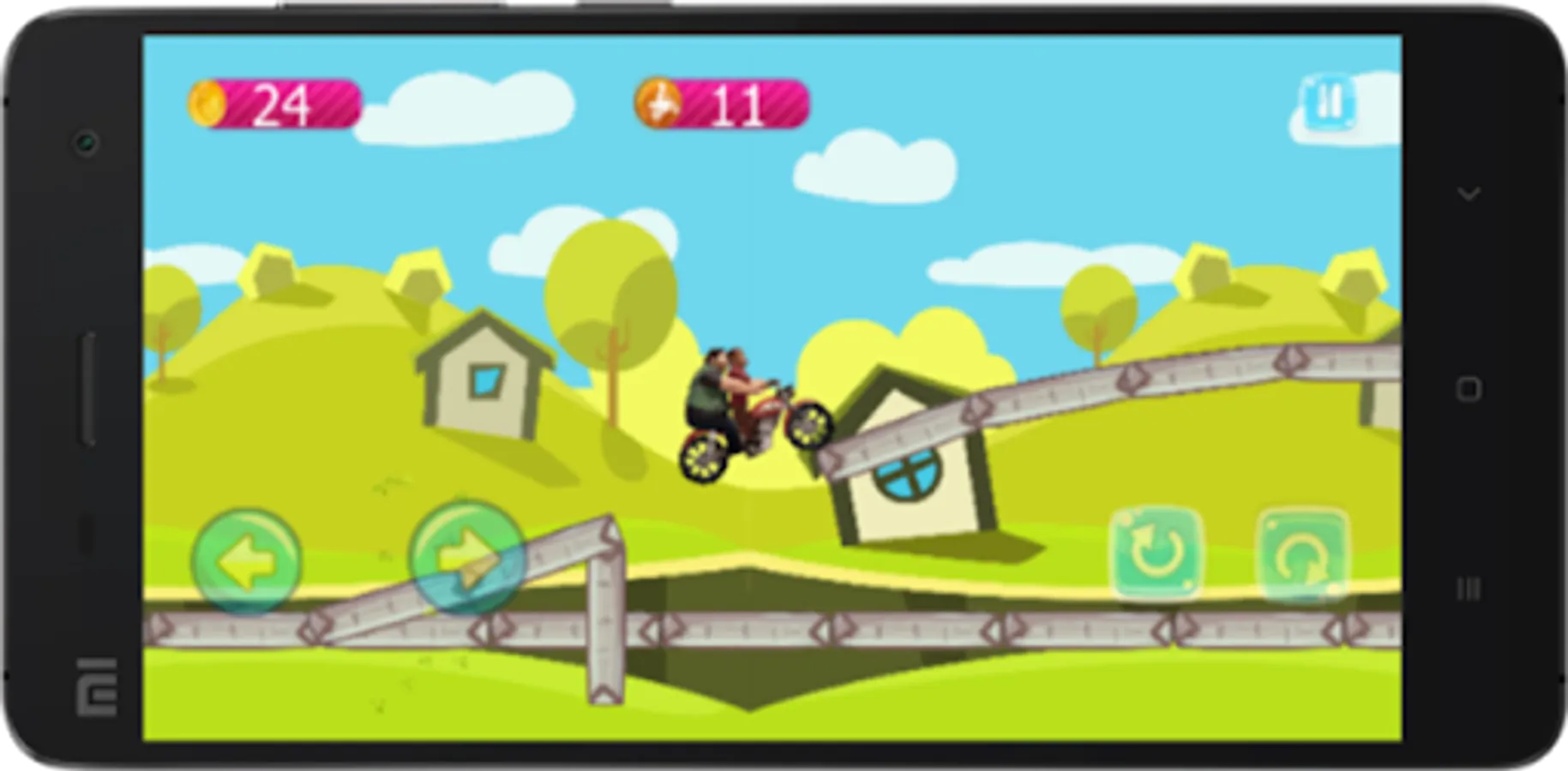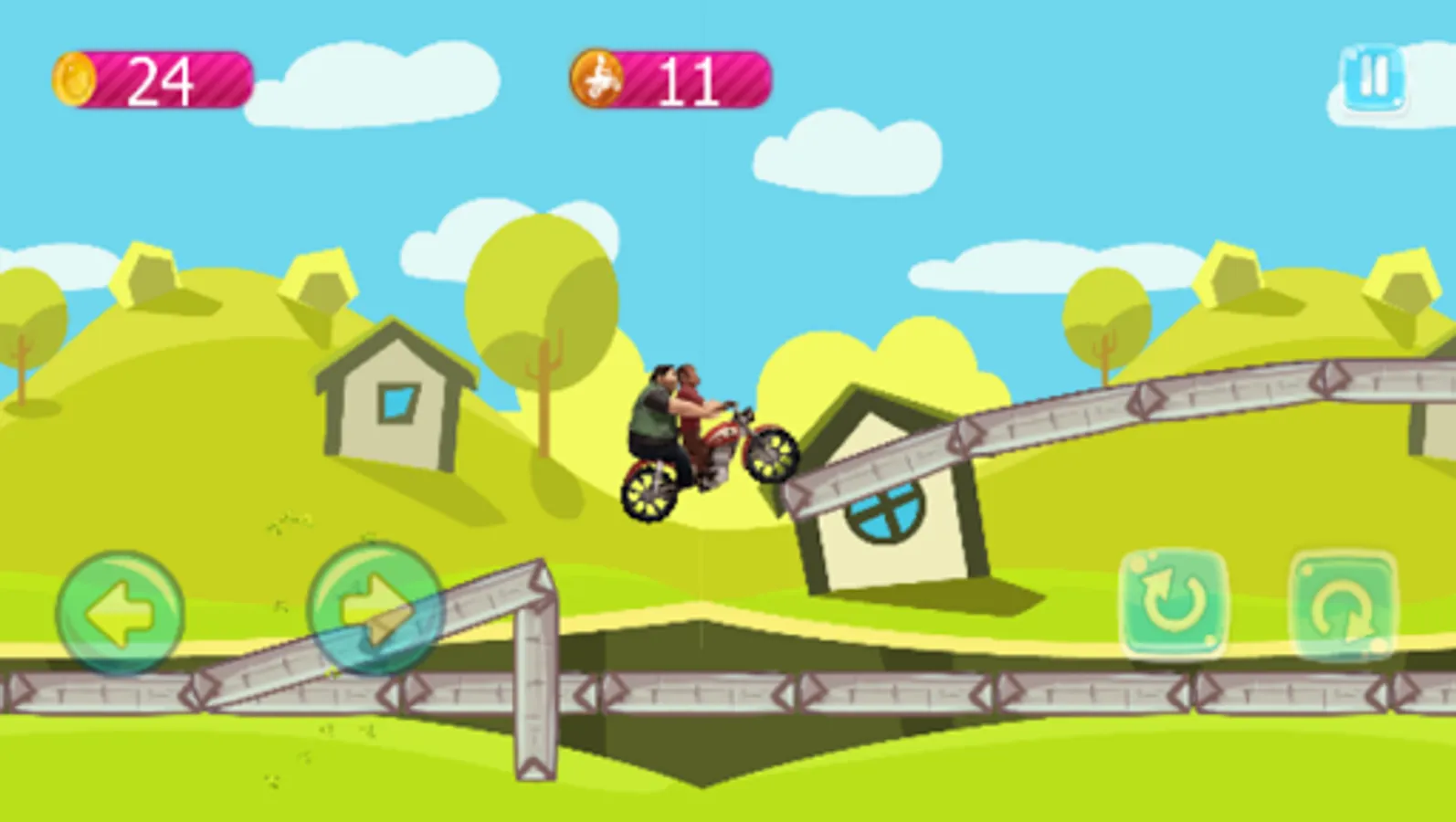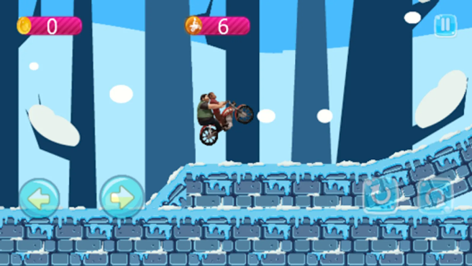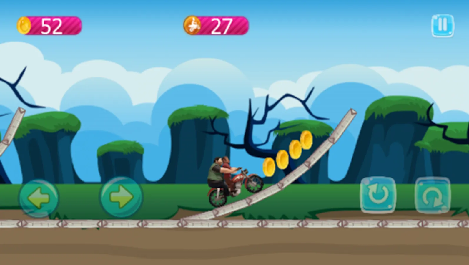 This game is very easy to play for anyone, because there are 4 control buttons that can control the game character. To run the motorbike press the Forward button on the left side of the screen, and when the motor is in the air the player can use two Rotation buttons that are in the right corner of the screen to control the motor.