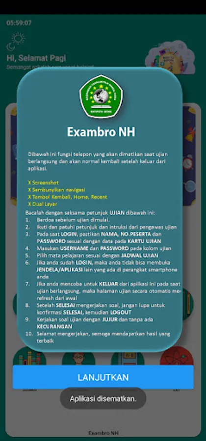 This application was made specifically for the MTs Nurul Huda Banyuputih Batang Exam browser