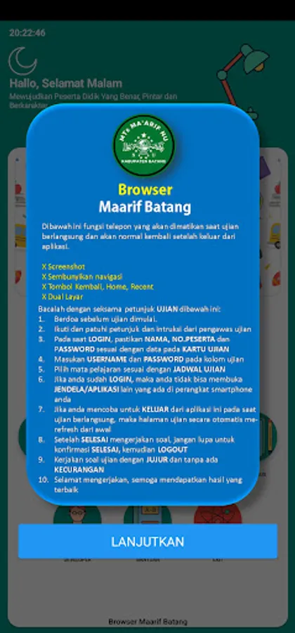 This application is a special browser application that is made for exam activities in the MTs Ma'arif NU Batang district.