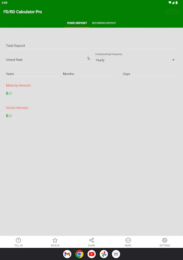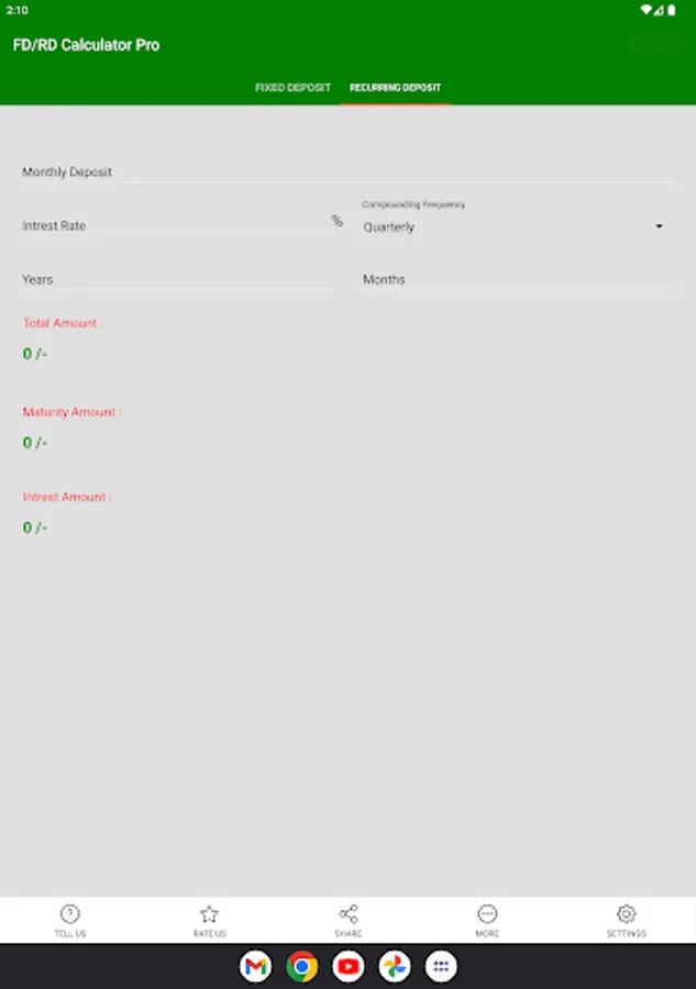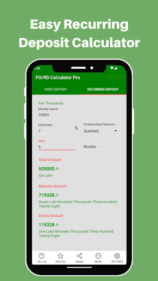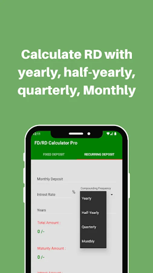 Take control of your finances and plan for your future with our FD/RD Calculator app. Download now and start planning your savings today!"