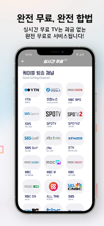 YTN, Yonhap News, MBC SPORTS+, SBS SPORTS, SPOTV, SPOTV2, SBS GOLF, JTBC FOX, MBC EVERY1, MBC DRAMA, MBC M, MBC ON, ALL THE KPOP, SBS CNBC, SBS MTV, TBS, Korea Economy TV, E-Daily , MTN, Pax Economy TV, MGTV, SEN, EBS2, EBS KIDS, EBS+, EBS+2, EBS ENGLISH, ANIPLUS, Talent TV, JEI ENGLISH, YTN Science, YTN 2, OLIVE, CHING, FTV, FISHING TV, STN, Go TV, ARTE TV, Korean traditional music broadcasting, UBC, OBS, Arirang TV, CTS, BTN,