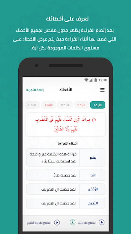 • The ability to listen to the correct reading of each verse.