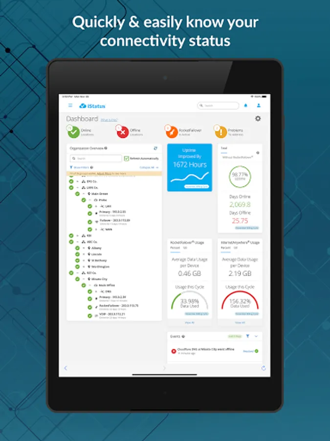 • iStatus Dashboard – cloud-based management platform to give you a single-pane overview of all remote location’s Internet connections. Easily drill down to see when and where issues occur for proactive management.