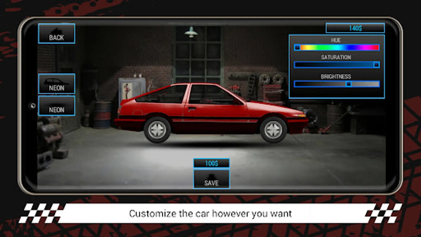 You can set the visual details to your car, putting a body kit or rear wing you improves the aerodynamics of your car, and the car's dynamics on the speed!