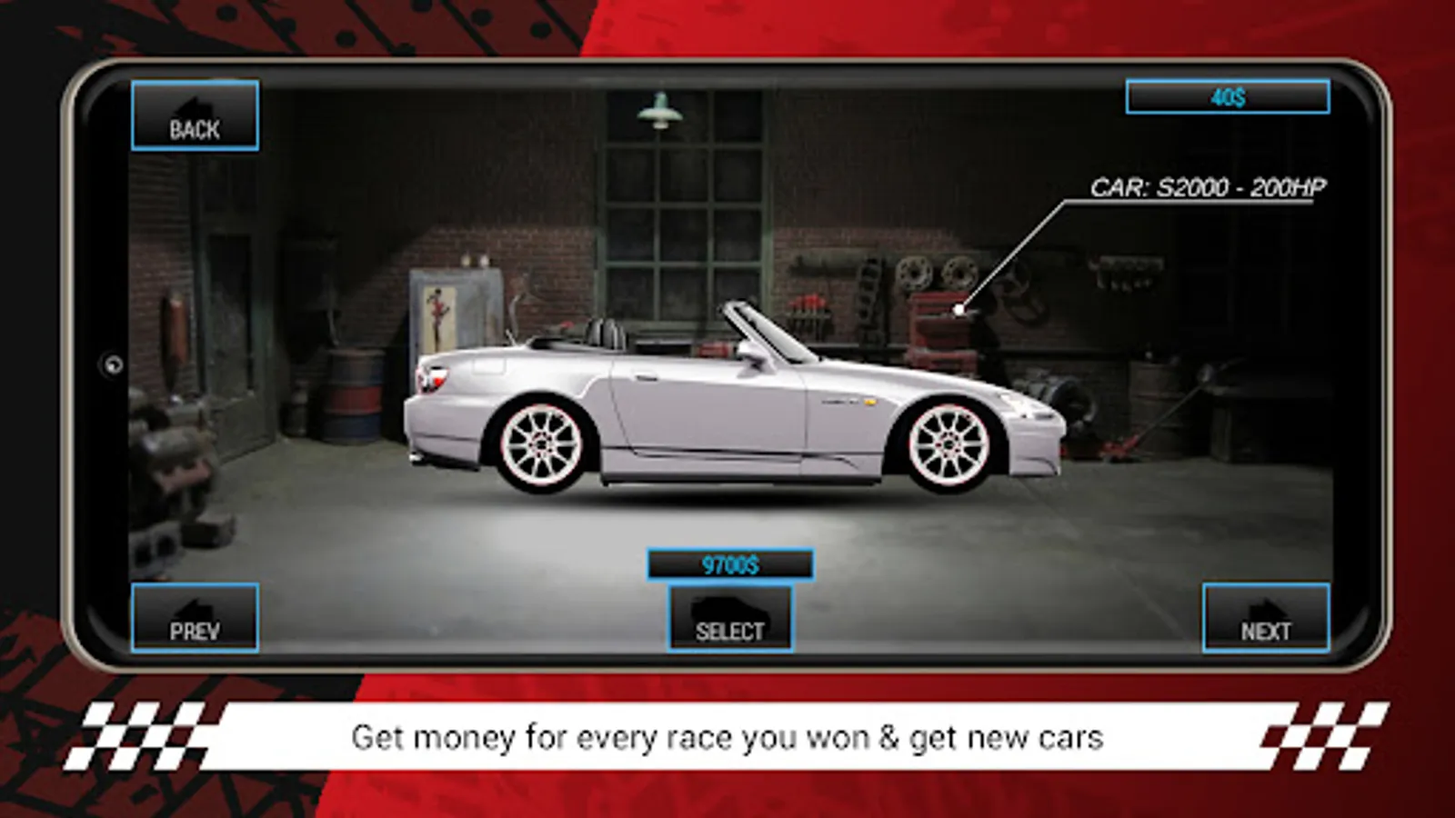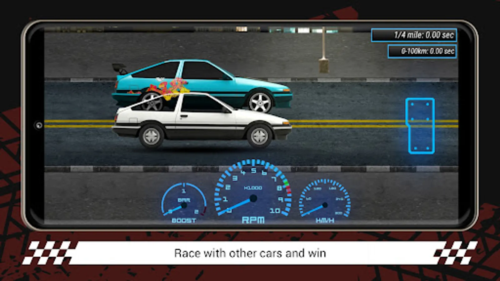 The game is a simulation of drag racing.