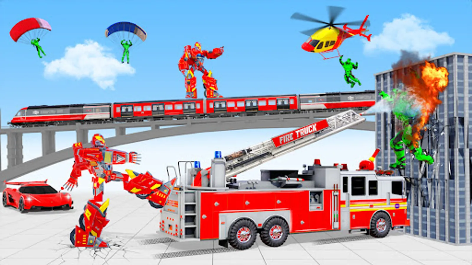 Our fire truck robot game provide you ultimate rescue skills of fire brigade along with robot transformation skills. Are you a fan of robot games along with best transforming techniques, then this blend of flying firefighter truck and robot transformation will give you great exposure. You will have to utilize fire truck driving skills along with quick robot transforming abilities to complete challenging rescue missions.