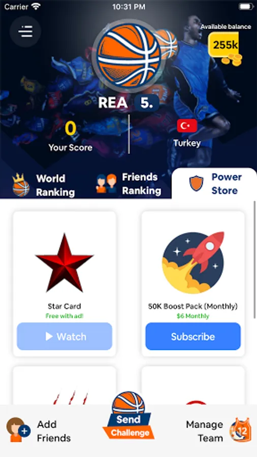 Hoop-y is a mobile game. Who want to play with their friends for your basketball challenge. They can manage their basketball teams and send new challenge request for their friends. They can watch advertising and they can get money. They can use their money for create a better basketball teams.