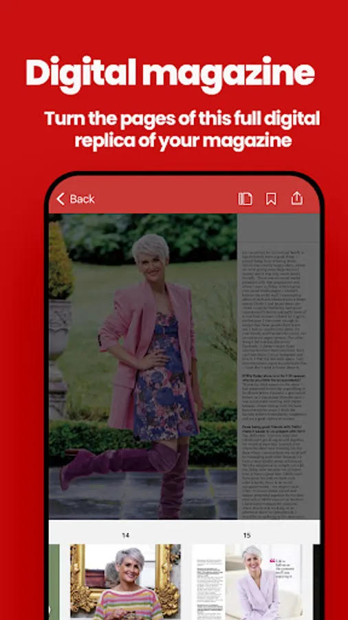 Flip your device and read the magazine as a double-page spread or tap the page selector to choose from a thumbnail image of each page. Viewable on your tablet, PC, or mobile phone.