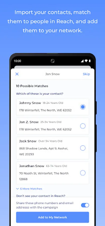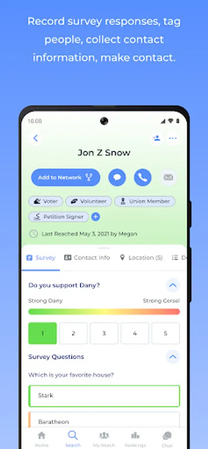 Reach is the grassroots organizing app that lets you truly meet people where they are, build relationships, manage your team, and get results.