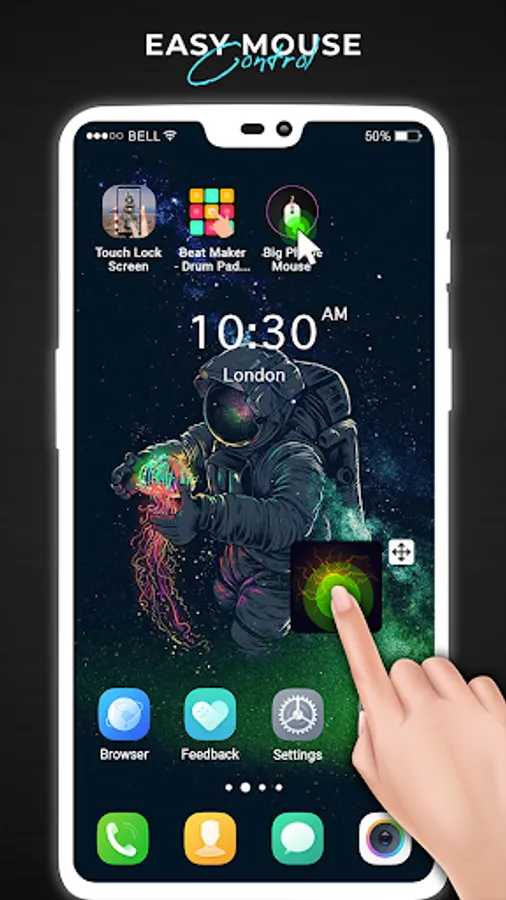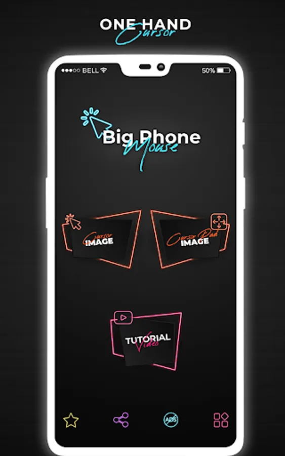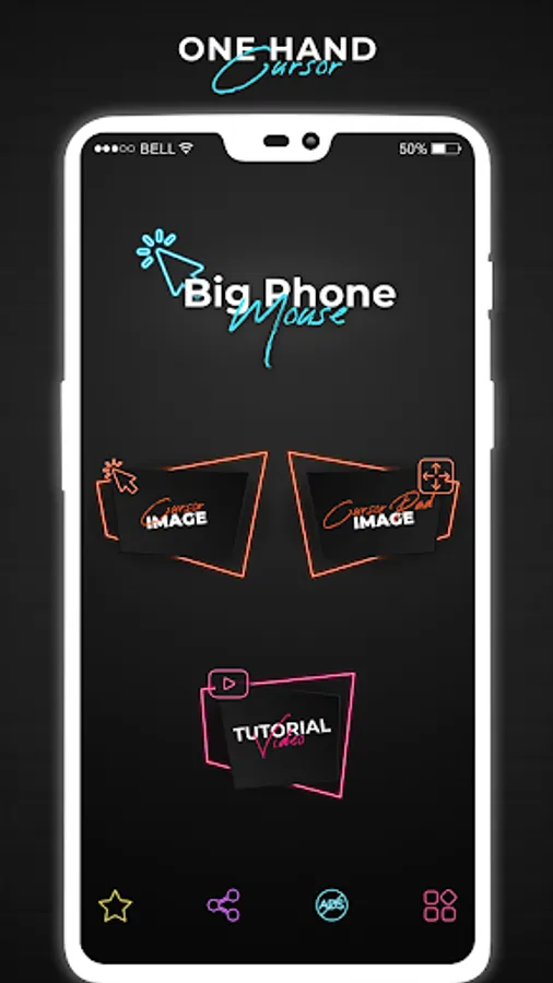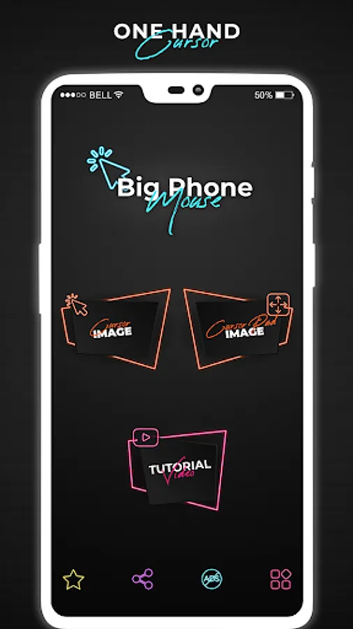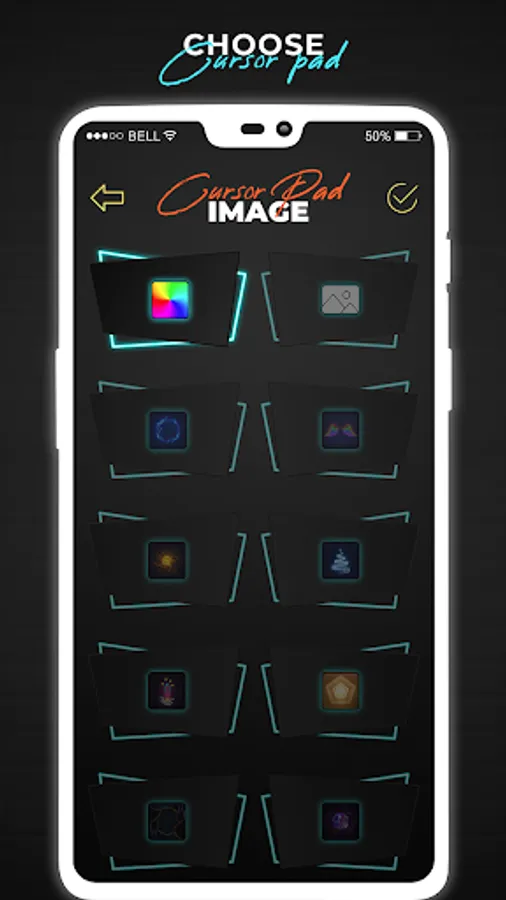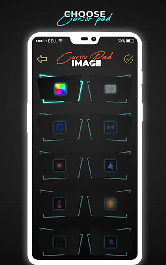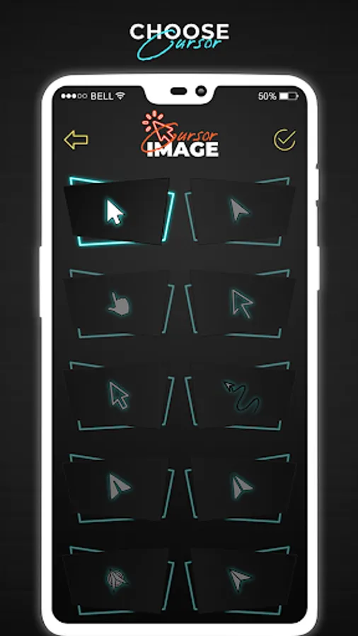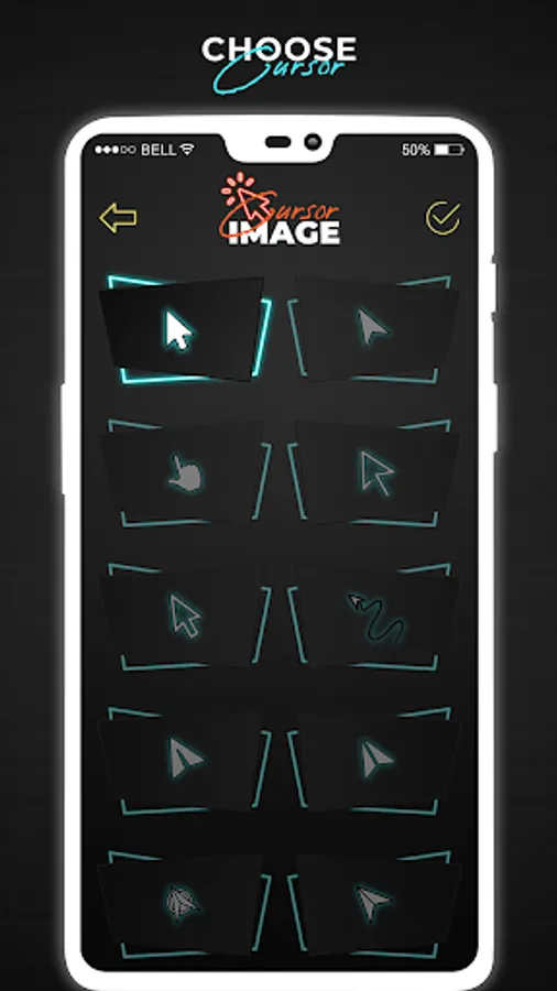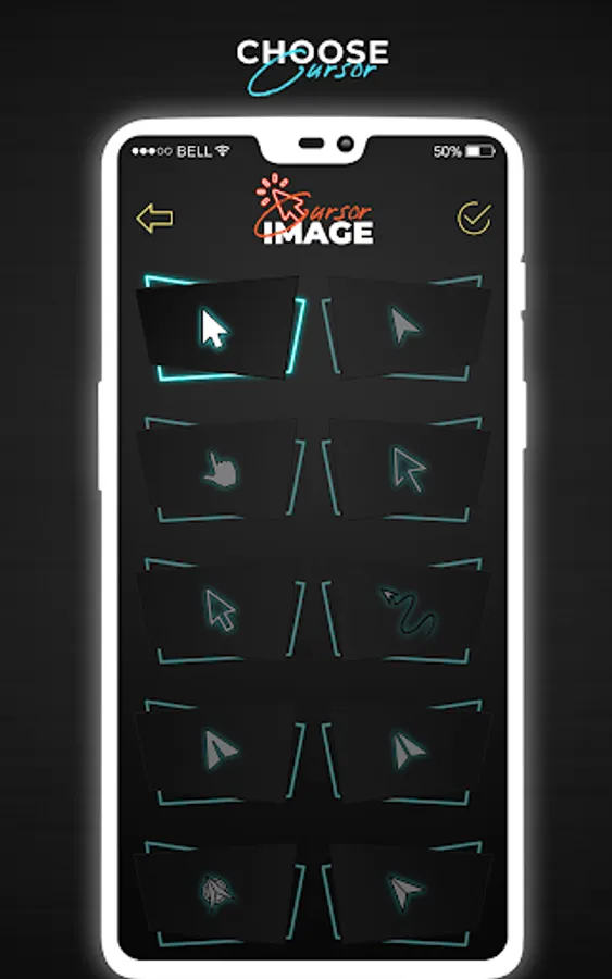 Mouse Pointer app of cell phone mouse screen gives you more than 10 different kinds of cursors icon options and you can select any app cursor from it.